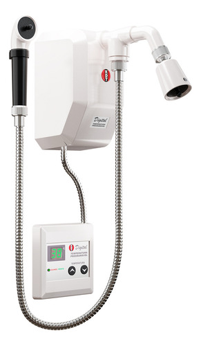 Especificações técnicas: - Tensão: 220V. - Potência máxima: 8.800W. - Corrente máxima: 40A. - Fiação - Bitola mínima (mm²): 6mm. - Disjuntor: 50A. - Pressão mínima/máxima de funcionamento KPA: 1 m.c.a/40 m.c.a. - Ajuste da temperatura de grau em grau digitalmente até o máximo de 52ºC. - Controle digital conectado ao aparelho. - Controle automático inteligente de temperatura garantindo economia máxima de energia. - É possível mudar a temperatura durante o banho com total segurança. - Poucos segundos de ajuste em caso de mudança da temperatura ou mudança na vazão da água. - Mantém constante a temperatura escolhida durante todo banho. - Visualização da temperatura da água na entrada do aparelho, consumo de água e tempo de banho. - Desviador: desvia totalmente a água para o chuveirinho ou para ducha facilmente. - Comprimento total da mangueira: 1.80m. - Resistência extremamente silenciosa e com tratamento térmico. - Design exclusivo com alta padrão de acabamento. - Alto padrão de segurança e durabilidade. - Produto em conformidade com a Norma NSR 12090 (corrente de fuga) para utilização de resistividade superior à 3000 Ohm x cm. - Grau de proteção do invólucro IP24, conforme norma NBR 6146 (invólucros de equipamentos eletrônicos). - Produto com assistência técnica especializada se necessário. Descrição detalhada: A ducha inteligente digital KDT é a opção mais segura e econômica para quem deseja tomar um excelente banho. Com tecnologia que reconhece a temperatura de entrada utilizando apenas a energia exata necessária para deixar a água na temperatura programada. Ex.: Se a água da caixa está a 30ºC e você programou para uma temperatura de 40ºC, o consumo do aparelho será somente para suprir essa diferença de 10ºC para maior economia com precisão. A ducha ligará de modo automático quando o sistema de aquecimento não for capaz de aquecer a água na temperatura desejada. Ligando somente quando necessário, irá proporcionar uma grande economia de energia. Possui a opção de escolher e manter a temperatura da água, para que o banho seja sempre agradável. O controle digital permite um controle preciso da temperatura de grau em grau até um máximo de 52ºC, podendo ainda alterar a temperatura desejada durante o banho com 100% de segurança. Se resolver alterar a temperatura programada ou houver mudança na vazão de água durante a utilização, o aparelho através de microchips inteligentes irá se adaptar a nova condição, mantendo a temperatura escolhida durante todo o funcionamento do equipamento. É possível visualizar a temperatura da água na entrada do aparelho, o consumo de água e o tempo de banho, além de poder facilmente controlar a potência máxima utilizada no aparelho. O desviador KDT desvia totalmente a água para o chuveirinho ou para a ducha, sem vazamentos desconfortáveis e de maneira muito simples. Produto com alta qualidade no acabamento com ótimos materiais utilizados em sua produção, aliados à alta tecnologia e preocupação com o meio ambiente é o que torna essa ducha tão especial. Ducha extremamente silenciosa e bonita. Verifique as especificações técnicas do produto com atenção antes Especificações técnicas: - Tensão: 220V. - Potência máxima: 8.800W. - Corrente máxima: 40A. - Fiação - Bitola mínima (mm²): 6mm. - Disjuntor: 50A. - Pressão mínima/máxima de funcionamento KPA: 1 m.c.a/40 m.c.a. - Ajuste da temperatura de grau em grau digitalmente até o máximo de 52ºC. - Controle digital conectado ao aparelho. - Controle automático inteligente de temperatura garantindo economia máxima de energia. - É possível mudar a temperatura durante o banho com total segurança. - Poucos segundos de ajuste em caso de mudança da temperatura ou mudança na vazão da água. - Mantém constante a temperatura escolhida durante todo banho. - Visualização da temperatura da água na entrada do aparelho, consumo de água e tempo de banho. - Desviador: desvia totalmente a água para o chuveirinho ou para ducha facilmente. - Comprimento total da mangueira: 1.80m. - Resistência extremamente silenciosa e com tratamento térmico. - Design exclusivo com alta padrão de acabamento. - Alto padrão de segurança e durabilidade. - Produto em conformidade com a Norma NSR 12090 (corrente de fuga) para utilização de resistividade superior à 3000 Ohm x cm. - Grau de proteção do invólucro IP24, conforme norma NBR 6146 (invólucros de equipamentos eletrônicos). - Produto com assistência técnica especializada se necessário. Descrição detalhada: A ducha inteligente digital KDT é a opção mais segura e econômica para quem deseja tomar um excelente banho. Com tecnologia que reconhece a temperatura de entrada utilizando apenas a energia exata necessária para deixar a água na temperatura programada. Ex.: Se a água da caixa está a 30ºC e você programou para uma temperatura de 40ºC, o consumo do aparelho será somente para suprir essa diferença de 10ºC para maior economia com precisão. A ducha ligará de modo automático quando o sistema de aquecimento não for capaz de aquecer a água na temperatura desejada. Ligando somente quando necessário, irá proporcionar uma grande economia de energia. Possui a opção de escolher e manter a temperatura da água, para que o banho seja sempre agradável. O controle digital permite um controle preciso da temperatura de grau em grau até um máximo de 52ºC, podendo ainda alterar a temperatura desejada durante o banho com 100% de segurança. Se resolver alterar a temperatura programada ou houver mudança na vazão de água durante a utilização, o aparelho através de microchips inteligentes irá se adaptar a nova condição, mantendo a temperatura escolhida durante todo o funcionamento do equipamento. É possível visualizar a temperatura da água na entrada do aparelho, o consumo de água e o tempo de banho, além de poder facilmente controlar a