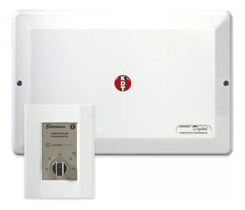 Especificações Técnicas: Aquecedor central eletrônico de água + ducha super jato KDT. Tensão: 220V. Potência máxima: 10.560W. Corrente máxima: 48A. Fiação - Bitola mínima (mm²): 10mm. Disjuntor: 50A (compatível com disjuntor DR). Pressão mínima/máxima de funcionamento KPA: 1 m.c.a/40 m.c.a. Vazão: 20ºC na vazão de 7.5L/min / 50ºC na vazão 3L/min. Controle remoto eletrônico conectado ao aparelho. Ajuste da temperatura de grau em grau eletronicamente até o máximo de 50ºC. Controle automático inteligente de temperatura garantindo economia máxima de energia. É possível mudar a temperatura durante o banho com total segurança. Poucos segundos de ajuste em caso de mudança da temperatura ou mudança na vazão da água. Mantém constante a temperatura escolhida. Controle da potência máxima utilizada no aparelho. Fornece água quente para todos os pontos do banheiro: ducha, lavatório, banheira, duchaEspecificações Técnicas: Aquecedor central eletrônico de água + ducha super jato KDT. Tensão: 220V. Potência máxima: 10.560W. Corrente máxima: 48A. Fiação - Bitola mínima (mm²): 10mm. Disjuntor: 50A (compatível com disjuntor DR). Pressão mínima/máxima de funcionamento KPA: 1 m.c.a/40 m.c.a. Vazão: 20ºC na vazão de 7.5L/min / 50ºC na vazão 3L/min. Controle remoto eletrônico conectado ao aparelho. Ajuste da temperatura de grau em grau eletronicamente até o máximo de 50ºC. Controle automático inteligente de temperatura garantindo economia máxima de energia. É possível mudar a temperatura durante o banho com total segurança. Poucos segundos de ajuste em caso de mudança da temperatura ou mudança na vazão da água. Mantém constante a temperatura escolhida. Controle da potência máxima utilizada no aparelho. Fornece água quente para todos os pontos do banheiro: ducha, lavatório, banheira, ducha higiênica, etc. Tecnologia que permite sua instalação em uma única tubulação de água quente. Ideal com outros sistemas de aquecimento como solar, gás ou boiler elétrico. Aparelho extremamente silencioso. Design exclusivo com alta padrão de acabamento. Alto padrão de segurança e durabilidade. Produto em conformidade com a Norma NSR 12090 (corrente de fuga) para utilização de resistividade superior à 3000 Ohm x cm. Produto com desempenho aprovado pelo INMETRO. Produto com assistência técnica especializada e garantia se necessário. Medidas aproximadas: 27 x 18 x 11cm. CONSUMO INTELIGENTE DE ENERGIA E ECONOMIA DE ÁGUA O Aquecedor Central KDT é a opção mais segura e econômica para o seu banho. Nossa tecnologia reconhece a temperatura de entrada e utiliza apenas a energia necessária para deixar a água na temperatura programada. Ex: Se a água da caixa está a 30°C e você programou seu banho para uma temperatura de 37°C, o consumo será somente para aquecer essa diferença de 7°C. PARCEIRA IDEAL DE QUALQUER TIPO DE AQUECIMENTO O Aquecedor ligará automaticamente quando o sistema aquecimento não for capaz de aquecer a água na temperatura desejada. Essa característica proporciona grande economia de energia, pois a utiliza somente quando for necessário. CONTROLE AUTOMÁTICO DE TEMPERATURA Único no mercado com a opção de escolher e manter a temperatura da água, para que seu banho seja agradável e econômico. Através do Controle Digital ou Eletrônico, você programa a temperatura de grau em grau (Digital até 60°C/Eletrônico até 50°C) e pode alterá-la durante o banho com total segurança. Se resolver alterar a temperatura programada ou a vazão (volume de água) durante a utilização, em segundos o Aquecedor se adaptará à nova condição, mantendo a temperatura escolhida durante todo o funcionamento do equipamento. Obs.: No Controle Remoto Digital você visualiza a temperatura da água na entrada do aparelho, o consumo de água e o tempo de banho, além de poder controlar a potência máxima utilizada em seu aparelho. UM SHOW DE BANHO Com design exclusivo e resistência extremamente silenciosa, o Aquecedor Central KDT proporciona uma sensação de relaxamento e prazer. Um verdadeiro show de banho! AQUECE O BANHEIRO TODO Fornece água quente para todos os pontos do banheiro (ducha, lavatório, banheira, ducha higiênica, etc), com economia na obra. Sua tecnologia de regulagem de temperatura permite que seja instalado com uma única tubulação de água quente, diminuindo gastos com misturadores e registros. ALTO PADRÃO DE ACABAMENTO, COM RESPONSABILIDADE A qualidade de acabamento e materiais utilizados, aliados à alta tecnologia e preocupação com o meio ambiente se tornam um compromisso da KDT com seus clientes e com nosso planeta. Estamos constantemente à procura de novos materiais e soluções sustentáveis para um futuro melhor. Itens Inclusos: 1 Aquecedor central eletrônico; 1 Ducha super jato KDT; 1 Manual de Instruções e Termo de Garantia; ATENÇÃO Enviado com Nota Fiscal. SOMOS ASSISTÊNCIA TÉCNICA AUTORIZADA KDT. higiênica, etc. Tecnologia que permite sua instalação em uma única tubulação de água quente. Ideal com outros sistemas de aquecimento como solar, gás ou boiler elétrico. Aparelho extremamente silencioso. Design exclusivo com alta padrão de acabamento. Alto padrão de segurança e durabilidade. Produto em conformidade com a Norma NSR 12090 (corrente de fuga) para utilização de resistividade superior à 3000 Ohm x cm. Produto com desempenho aprovado pelo INMETRO. Produto com assistência técnica especializada e garantia se necessário. Medidas aproximadas: 27 x 18 x 11cm. CONSUMO INTELIGENTE DE ENERGIA E ECONOMIA DE ÁGUA O Aquecedor Central KDT é a opção mais segura e econômica para o seu banho. Nossa tecnologia reconhece a temperatura de entrada e utiliza apenas a energia necessária para deixar a água na temperatura programada. Ex: Se a água da caixa está a 30°C e você programou seu banho para uma temperatura de 37°C, o consumo será somente para aquecer essa dif