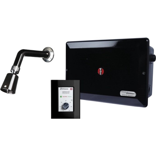 Especificações Técnicas: Aquecedor central eletrônico de água + ducha super jato KDT. Tensão: 220V. Potência máxima: 10.560W. Corrente máxima: 48A. Fiação - Bitola mínima (mm²): 10mm. Disjuntor: 50A (compatível com disjuntor DR). Pressão mínima/máxima de funcionamento KPA: 1 m.c.a/40 m.c.a. Vazão: 20ºC na vazão de 7.5L/min / 50ºC na vazão 3L/min. Controle remoto eletrônico conectado ao aparelho. Ajuste da temperatura de grau em grau eletronicamente até o máximo de 50ºC. Controle automático inteligente de temperatura garantindo economia máxima de energia. É possível mudar a temperatura durante o banho com total segurança. Poucos segundos de ajuste em caso de mudança da temperatura ou mudança na vazão da água. Mantém constante a temperatura escolhida. Controle da potência máxima utilizada no aparelho. Fornece água quente para todos os pontos do banheiro: ducha, lavatório, banheira, ducha higiênica, etc. Tecnologia que permite sua instalação em uma única tubulação de água quente. Ideal com outros sistemas de aquecimento como solar, gás ou boiler elétrico. Aparelho extremamente silencioso. Design exclusivo com alta padrão de acabamento. Alto padrão de segurança e durabilidade. Produto em conformidade com a Norma NSR 12090 (corrente de fuga) para utilização de resistividade superior à 3000 Ohm x cm. Produto com desempenho aprovado pelo INMETRO. Produto com assistência técnica especializada e garantia se necessário. Medidas aproximadas: 27 x 18 x 11cm. CONSUMO INTELIGENTE DE ENERGIA E ECONOMIA DE ÁGUA O Aquecedor Central KDT é a opção mais segura e econômica para o seu banho. Nossa tecnologia reconhece a temperatura de entrada e utiliza apenas a energia necessária para deixar a água na temperatura programada. Ex: Se a água da caixa está a 30°C e você programou seu banho para uma temperatura de 37°C, o consumo será somente para aquecer essa diferença de 7°C. PARCEIRA IDEAL DE QUALQUER TIPO DE AQUECIMENTO O Aquecedor ligará automaticamente quando o sistema aquecimento não for capaz de aquecer a água na temperatura desejada. Essa característica proporciona grande economia de energia, pois a utiliza somente quando for necessário. CONTROLE AUTOMÁTICO DE TEMPERATURA Único no mercado com a opção de escolher e manter a temperatura da água, para que seu banho seja agradável e econômico. Através do Controle Digital ou Eletrônico, vocêEspecificações Técnicas: Aquecedor central eletrônico de água + ducha super jato KDT. Tensão: 220V. Potência máxima: 10.560W. Corrente máxima: 48A. Fiação - Bitola mínima (mm²): 10mm. Disjuntor: 50A (compatível com disjuntor DR). Pressão mínima/máxima de funcionamento KPA: 1 m.c.a/40 m.c.a. Vazão: 20ºC na vazão de 7.5L/min / 50ºC na vazão 3L/min. Controle remoto eletrônico conectado ao aparelho. Ajuste da temperatura de grau em grau eletronicamente até o máximo de 50ºC. Controle automático inteligente de temperatura garantindo economia máxima de energia. É possível mudar a temperatura durante o banho com total segurança. Poucos segundos de ajuste em caso de mudança da temperatura ou mudança na vazão da água. Mantém constante a temperatura escolhida. Controle da potência máxima utilizada no aparelho. Fornece água quente para todos os pontos do banheiro: ducha, lavatório, banheira, ducha higiênica, etc. Tecnologia que permite sua instalação em uma única tubulação de água quente. Ideal com outros sistemas de aquecimento como solar, gás ou boiler elétrico. Aparelho extremamente silencioso. Design exclusivo com alta padrão de acabamento. Alto padrão de segurança e durabilidade. Produto em conformidade com a Norma NSR 12090 (corrente de fuga) para utilização de resistividade superior à 3000 Ohm x cm. Produto com desempenho aprovado pelo INMETRO. Produto com assistência técnica especializada e garantia se necessário. Medidas aproximadas: 27 x 18 x 11cm. CONSUMO INTELIGENTE DE ENERGIA E ECONOMIA DE ÁGUA O Aquecedor Central KDT é a opção mais segura e econômica para o seu banho. Nossa tecnologia reconhece a temperatura de entrada e utiliza apenas a energia necessária para deixar a água na temperatura programada. Ex: Se a água da caixa está a 30°C e você programou seu banho para uma temperatura de 37°C, o consumo será somente para aquecer essa diferença de 7°C. PARCEIRA IDEAL DE QUALQUER TIPO DE AQUECIMENTO O Aquecedor ligará automaticamente quando o sistema aquecimento não for capaz de aquecer a água na temperatura desejada. Essa característica proporciona grande economia de energia, pois a utiliza somente quando for necessário. CONTROLE AUTOMÁTICO DE TEMPERATURA Único no mercado com a opção de escolher e manter a temperatura da água, para que seu banho seja agradável e econômico. Através do Controle Digital ou Eletrônico, você programa a temperatura de grau em grau (Digital até 60°C/Eletrônico até 50°C) e pode alterá-la durante o banho com total segurança. Se resolver alterar a temperatura programada ou a vazão (volume de água) durante a utilização, em segundos o Aquecedor se adaptará à nova condição, mantendo a temperatura escolhida durante todo o funcionamento do equipamento. Obs.: No Controle Remoto Digital você visualiza a temperatura da água na entrada do aparelho, o consumo de água e o tempo de banho, além de poder controlar a potência máxima utilizada em seu aparelho. UM SHOW DE BANHO Com design exclusivo e resistência extremamente silenciosa, o Aquecedor Central KDT proporciona uma sensação de relaxamento e prazer. Um verdadeiro show de banho! AQUECE O BANHEIRO TODO Fornece água quente para todos os pontos do banheiro (ducha, lavatório, banheira, ducha higiênica, etc), com economia na obra. Sua tecnologia de regulagem de temperatura permite que seja instalado com uma única tubulação de água quente, diminuindo gastos com misturadores e registros. ALTO PADRÃO DE ACABAMENT