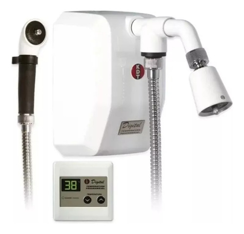 Especificações técnicas: Modelo: ducha digital com desviador. Marca: KDT. Tensão: 220V. Potência máxima: 8.800W. Corrente máxima: 40A. Fiação - Bitola mínima (mm²): 6mm. Disjuntor: 50A. Pressão mínima/máxima de funcionamento KPA: 1 m.c.a/40 m.c.a. Ajuste da temperatura de grau em grau digitalmente até o máximo de 52ºC. Controle digital conectado ao aparelho. Controle automático inteligente de temperatura garantindo economia máxima de energia. É possível mudar a temperatura durante o banho com total segurança. Poucos segundos de ajuste em caso de mudança da temperatura ou mudança na vazão da água. Mantém constante a temperatura escolhida. Visualização da temperatura da água na entrada do aparelho, consumo de água e tempo de banho. Extremamente silenciosa. Design exclusivo com alta padrão de acabamento. Alto padrão de segurança, durabilidade e comodidade. Produto com assistência técnica especializada e garantia. CONSUMO INTELIGENTE DE ENERGIA E ECONOMIA DE ÁGUA Graças à nossa tecnologia, as Duchas Inteligentes utilizarão sempre o mínimo de energia para aquecer a água na temperatura que você escolheu para tomar seu banho. Ex: Se a água da caixa está a 30°C e você programou seu banho para umatemperatura de 37°C o consumo será somente para aquecer essa diferença de 7°C. PARCEIRA IDEAL DE QUALQUER TIPO DE AQUECIMENTO A Ducha ligará automaticamente quando o sistema aquecimento não for capaz de aquecer a água na temperatura desejada. Essa característica proporciona grande economia de energia, pois a utiliza somente quando for necessário. CONTROLE AUTOMÁTICO DE TEMPERATURA Única no mercado com a opção de escolher e manter a temperatura da água, para que seu banho seja agradável e econômico. Através do Controle Digital, você programa a temperatura de grau em grau, até 52°C, podendo alterá-la durante o banho com total segurança. Se resolver alterar a temperatura programada ou a vazão (volume de água) durante o banho, em segundos nosso equipamento se adaptará à nova condição, mantendo a temperatura escolhida. Obs.: No Controle Remoto Digital você visualiza a temperatura da água na entrada do aparelho, o consumo de água e o tempo de banho, além de poder controlar aEspecificações técnicas: Modelo: ducha digital com desviador. Marca: KDT. Tensão: 220V. Potência máxima: 8.800W. Corrente máxima: 40A. Fiação - Bitola mínima (mm²): 6mm. Disjuntor: 50A. Pressão mínima/máxima de funcionamento KPA: 1 m.c.a/40 m.c.a. Ajuste da temperatura de grau em grau digitalmente até o máximo de 52ºC. Controle digital conectado ao aparelho. Controle automático inteligente de temperatura garantindo economia máxima de energia. É possível mudar a temperatura durante o banho com total segurança. Poucos segundos de ajuste em caso de mudança da temperatura ou mudança na vazão da água. Mantém constante a temperatura escolhida. Visualização da temperatura da água na entrada do aparelho, consumo de água e tempo de banho. Extremamente silenciosa. Design exclusivo com alta padrão de acabamento. Alto padrão de segurança, durabilidade e comodidade. Produto com assistência técnica especializada e garantia. CONSUMO INTELIGENTE DE ENERGIA E ECONOMIA DE ÁGUA Graças à nossa tecnologia, as Duchas Inteligentes utilizarão sempre o mínimo de energia para aquecer a água na temperatura que você escolheu para tomar seu banho. Ex: Se a água da caixa está a 30°C e você programou seu banho para umatemperatura de 37°C o consumo será somente para aquecer essa diferença de 7°C. PARCEIRA IDEAL DE QUALQUER TIPO DE AQUECIMENTO A Ducha ligará automaticamente quando o sistema aquecimento não for capaz de aquecer a água na temperatura desejada. Essa característica proporciona grande economia de energia, pois a utiliza somente quando for necessário. CONTROLE AUTOMÁTICO DE TEMPERATURA Única no mercado com a opção de escolher e manter a temperatura da água, para que seu banho seja agradável e econômico. Através do Controle Digital, você programa a temperatura de grau em grau, até 52°C, podendo alterá-la durante o banho com total segurança. Se resolver alterar a temperatura programada ou a vazão (volume de água) durante o banho, em segundos nosso equipamento se adaptará à nova condição, mantendo a temperatura escolhida. Obs.: No Controle Remoto Digital você visualiza a temperatura da água na entrada do aparelho, o consumo de água e o tempo de banho, além de poder controlar a potência máxima utilizada em seu aparelho. UM SHOW DE BANHO Com design exclusivo e resistência extremamente silenciosa, a Ducha Inteligente KDT proporciona uma sensação de relaxamento e prazer. Um verdadeiro show de banho! DESVIADOR (OPCIONAL) Com o Desviador KDT você tem o controle do banho em suas mãos. Desvia totalmente a água para o chuveirinho ou a para a ducha, sem vazamentos desconfortáveis. ALTO PADRÃO DE ACABAMENTO COM RESPONSABILIDADE A qualidade de acabamento e materiais utilizados, aliados à alta tecnologia e preocupação com o meio ambiente é um compromisso da KDT com seus clientes e com nosso planeta. Estamos constantemente à procura de novos materiais e soluções sustentáveis para um futuro melhor. Itens Inclusos: 1 Ducha Digital Com Desviador; 1 Desviador c/ mangueira e ducha manual; 1 Suporte para desviador; 1 Painel digital. 1 Manual de Instruções e Termo de Garantia; ATENÇÃO Enviado com Nota Fiscal. SOMOS ASSISTÊNCIA TÉCNICA AUTORIZADA KDT. potência máxima utilizada em seu aparelho. UM SHOW DE BANHO Com design exclusivo e resistência extremamente silenciosa, a Ducha Inteligente KDT proporciona uma sensação de relaxamento e prazer. Um verdadeiro show de banho! DESVIADOR (OPCIONAL) Com o Desviador KDT você tem o controle do banho em suas mãos. Desvia totalmente a água para o chuveirinho ou a para a ducha, sem vazamentos desconfortáveis. ALTO PADRÃO DE ACABAMENTO COM RESPONSABILIDADE A qual