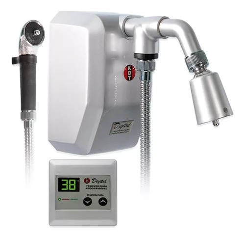 Especificações técnicas: Modelo: ducha digital com desviador. Marca: KDT. Tensão: 220V. Potência máxima: 8.800W. Corrente máxima: 40A. Fiação - Bitola mínima (mm²): 6mm. Disjuntor: 50A. Pressão mínima/máxima de funcionamento KPA: 1 m.c.a/40 m.c.a. Ajuste da temperatura de grau em grau digitalmente até o máximo de 52ºC. Controle digital conectado ao aparelho. Controle automático inteligente de temperatura garantindo economia máxima de energia. É possível mudar a temperatura durante o banho com total segurança. Poucos segundos de ajuste em caso de mudança da temperatura ou mudança na vazão da água. Mantém constante a temperatura escolhida. Visualização da temperatura da água na entrada do aparelho, consumo de água e tempo de banho. Extremamente silenciosa. Design exclusivo com alta padrão de acabamento. Alto padrão de segurança, durabilidade e comodidade. Produto com assistência técnica especializada e garantia. CONSUMO INTELIGENTE DE ENERGIA E ECONOMIA DE ÁGUA Graças à nossa tecnologia, as Duchas Inteligentes utilizarão sempre o mínimo de energia para aquecer a água na temperatura que você escolheu para tomar seu banho. Ex: Se a água da caixa está a 30°C e você programou seu banho para umatemperatura de 37°C o consumo será somente para aquecer essa diferença de 7°C. PARCEIRA IDEAL DE QUALQUER TIPO DE AQUECIMENTO A Ducha ligará automaticamente quando o sistema aquecimento não for capaz de aquecer a água na temperatura desejada. Essa característica proporciona grande economia de energia, pois a utiliza somente quando for necessário. CONTROLE AUTOMÁTICO DE TEMPERATURA Única no mercado com a opção de escolher e manter a temperatura da água, para que seu banho seja agradável e econômico. Através do Controle Digital, você programa a temperatura de grau em grau, até 52°C, podendo alterá-la durante o banho com total segurança. Se resolver alterar a temperatura programada ou a vazão (volume de água) durante o banho, em segundos nosso equipamento se adaptará à nova condição, mantendo a temperatura escolhida. Obs.: No Controle Remoto Digital você visualiza a temperatura da água na entrada do aparelho, o consumo de água e o tempo de banho, além de poder controlar a potência máxima utilizada em seu aparelho. UM SHOW DE BANHO Com design exclusivo e resistência extremamente silenciosa, a Ducha Inteligente KDT proporciona uma sensação de relaxamento e prazer. Um verdadeiro show de banho! DESVIADOR (OPCIONAL) Com o Desviador KDT você tem o controle do banho em suas mãos. Desvia totalmente a água para o chuveirinho ou a para a ducha, sem vazamentos desconfortáveis. ALTO PADRÃO DE ACABAMENTO COM RESPONSABILIDADE A qualidade deEspecificações técnicas: Modelo: ducha digital com desviador. Marca: KDT. Tensão: 220V. Potência máxima: 8.800W. Corrente máxima: 40A. Fiação - Bitola mínima (mm²): 6mm. Disjuntor: 50A. Pressão mínima/máxima de funcionamento KPA: 1 m.c.a/40 m.c.a. Ajuste da temperatura de grau em grau digitalmente até o máximo de 52ºC. Controle digital conectado ao aparelho. Controle automático inteligente de temperatura garantindo economia máxima de energia. É possível mudar a temperatura durante o banho com total segurança. Poucos segundos de ajuste em caso de mudança da temperatura ou mudança na vazão da água. Mantém constante a temperatura escolhida. Visualização da temperatura da água na entrada do aparelho, consumo de água e tempo de banho. Extremamente silenciosa. Design exclusivo com alta padrão de acabamento. Alto padrão de segurança, durabilidade e comodidade. Produto com assistência técnica especializada e garantia. CONSUMO INTELIGENTE DE ENERGIA E ECONOMIA DE ÁGUA Graças à nossa tecnologia, as Duchas Inteligentes utilizarão sempre o mínimo de energia para aquecer a água na temperatura que você escolheu para tomar seu banho. Ex: Se a água da caixa está a 30°C e você programou seu banho para umatemperatura de 37°C o consumo será somente para aquecer essa diferença de 7°C. PARCEIRA IDEAL DE QUALQUER TIPO DE AQUECIMENTO A Ducha ligará automaticamente quando o sistema aquecimento não for capaz de aquecer a água na temperatura desejada. Essa característica proporciona grande economia de energia, pois a utiliza somente quando for necessário. CONTROLE AUTOMÁTICO DE TEMPERATURA Única no mercado com a opção de escolher e manter a temperatura da água, para que seu banho seja agradável e econômico. Através do Controle Digital, você programa a temperatura de grau em grau, até 52°C, podendo alterá-la durante o banho com total segurança. Se resolver alterar a temperatura programada ou a vazão (volume de água) durante o banho, em segundos nosso equipamento se adaptará à nova condição, mantendo a temperatura escolhida. Obs.: No Controle Remoto Digital você visualiza a temperatura da água na entrada do aparelho, o consumo de água e o tempo de banho, além de poder controlar a potência máxima utilizada em seu aparelho. UM SHOW DE BANHO Com design exclusivo e resistência extremamente silenciosa, a Ducha Inteligente KDT proporciona uma sensação de relaxamento e prazer. Um verdadeiro show de banho! DESVIADOR (OPCIONAL) Com o Desviador KDT você tem o controle do banho em suas mãos. Desvia totalmente a água para o chuveirinho ou a para a ducha, sem vazamentos desconfortáveis. ALTO PADRÃO DE ACABAMENTO COM RESPONSABILIDADE A qualidade de acabamento e materiais utilizados, aliados à alta tecnologia e preocupação com o meio ambiente é um compromisso da KDT com seus clientes e com nosso planeta. Estamos constantemente à procura de novos materiais e soluções sustentáveis para um futuro melhor. Itens Inclusos: 1 Ducha Digital Com Desviador; 1 Desviador c/ mangueira e ducha manual; 1 Suporte para desviador; 1 Painel digital. 1 Manual de Instruções e Termo de Garantia; ATENÇÃO Enviado com Nota Fiscal. SOMOS ASSISTÊNCIA TÉCNICA AUTORIZ