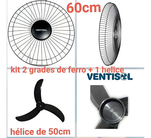 | Kit grade dianteira e grade traseira 60cm Ventilador ventisol original As grades medem 60cm Material da grade : ferro Somos revenda e autorizada Ventisol |